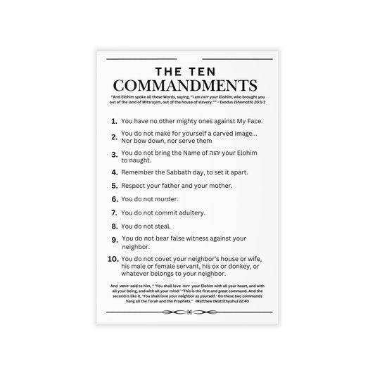 Ten Commandments using the Name of יהוה your Elohim - Wall Decal - 12" x 18" (White Background Color)