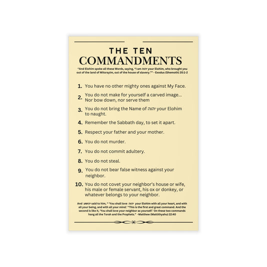 Ten Commandments using the Name of Yahuah, your Elohim - Wall Decal - 12" x 18" (Natural Background Color)