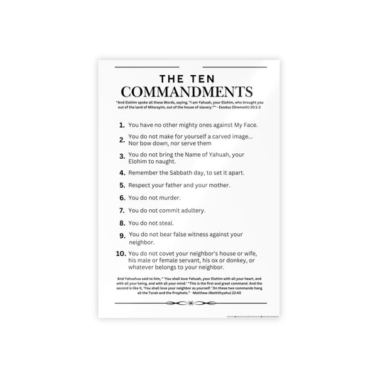 Ten Commandments Poster using the Name of Yahuah, your Elohim - Glossy Print (White Background Color)