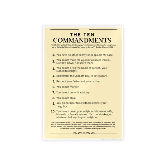 Ten Commandments Poster using the Name of Yahuah your Elohim - Glossy Print (Natural Background Color)