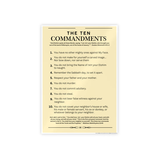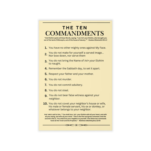 Ten Commandments Poster using the Name of יהוה your Elohim - Glossy Print (Natural Background Color)