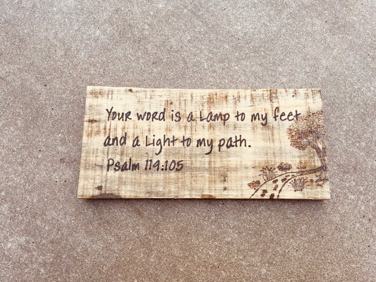 Psalm 119:105 "You word is a lamp to my feet..." Wood Burned Scripture